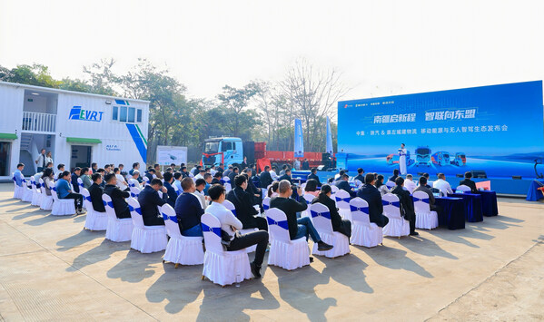 深圳2026年1月29日 /美通社/ — 1月29日,由中集车辆(集团)股份有限公司(以下简称“中集车辆”)(股票代码:301039.SZ)、陕西重型汽车有限公司(以下简称“陕重汽”)和崇左市城建物流有限责任公司(以下简称“崇左城建物流”)联合筹办的“南疆启新程 智联向东盟|中集•陕汽&崇左城建物流移动能源与无人智驾生态发布会”在广西崇左港隆重举行。活动中,中集车辆全球首家EV-RT体验中心正式开业,成为推动智能物流高质量发展的重要举措,引发行业广泛关注。