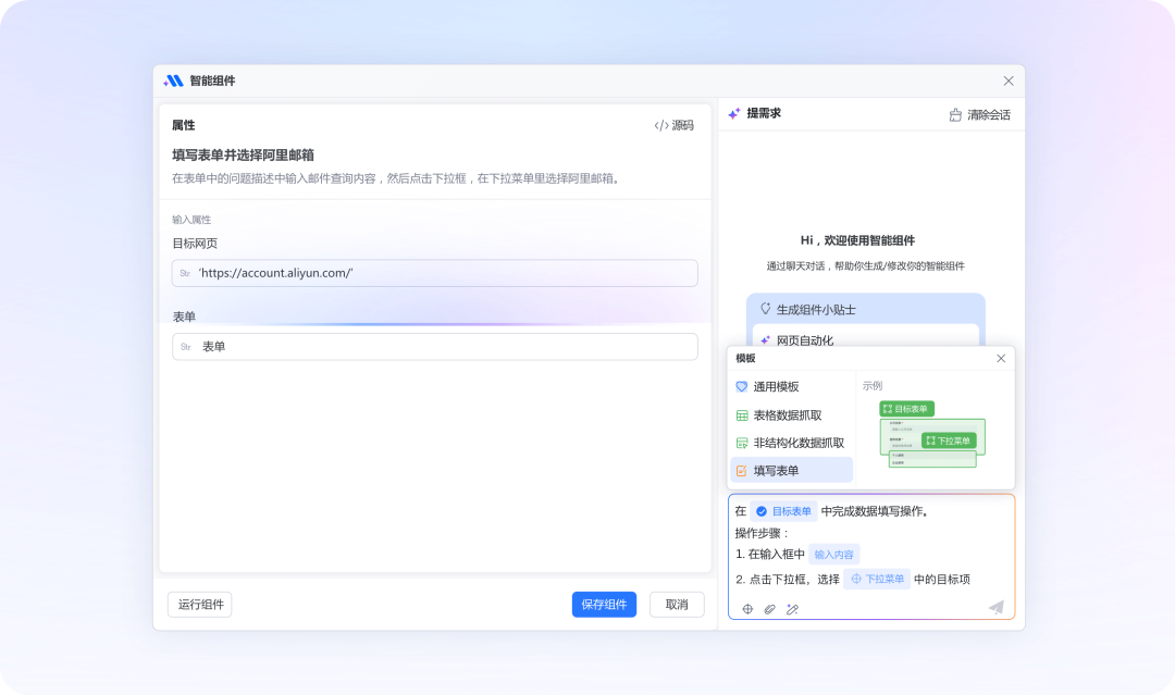 为进一步降低自动化开发门槛,艺赛旗引入全新的智能组件体系,以大语言模型的理解与推理能力为核心,实现自然语言驱动开发。