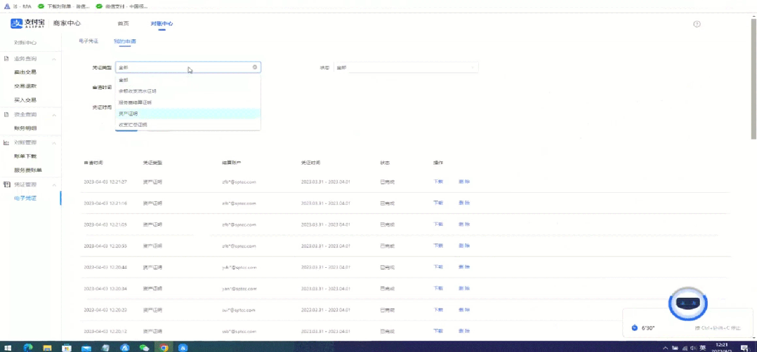 支付宝、微信账单与凭证下载的场景于计划财务部使用,财务老师需要每日及每月下载账务明细和资产证明,但商户号众多且需要逐一登录,不可批量操作,整体流程固定且繁琐,适合借助RPA来实现该流程的自动化,让人员将更多的精力和时间投入到财务工作中,尤其是月底月初财务工作繁忙的时候。