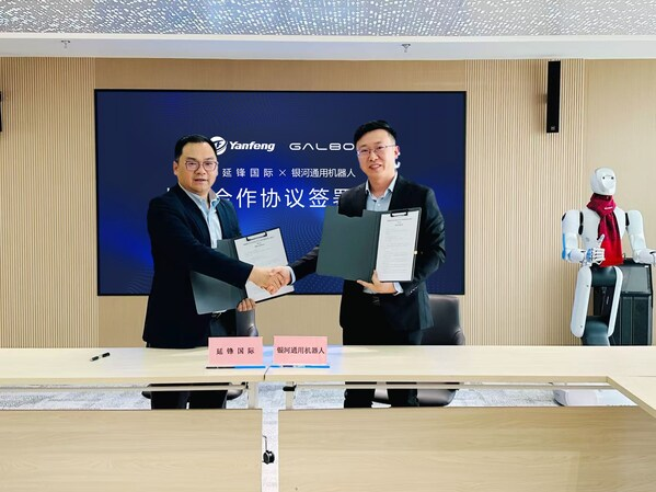 北京2026年4月15日 /美通社/ — 4 月 13 日,延锋国际与银河通用正式达成战略合作。本次合作以智能制造与具身智能的深度融合为核心方向,聚焦工业场景规模化落地需求展开全方位协同。双方将以银河通用具身大模型”银河星脑”和数据基建”银河星坊”为核心,融合延锋在制造体系、质量控制及全球布局方面的产业能力,推动具身智能机器人从”自动化执行”迈向”自主决策与柔性作业”的新阶段。