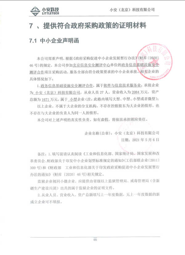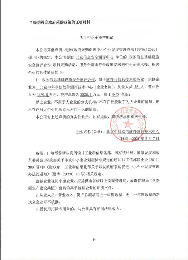 2.中标人《中小企业声明函》