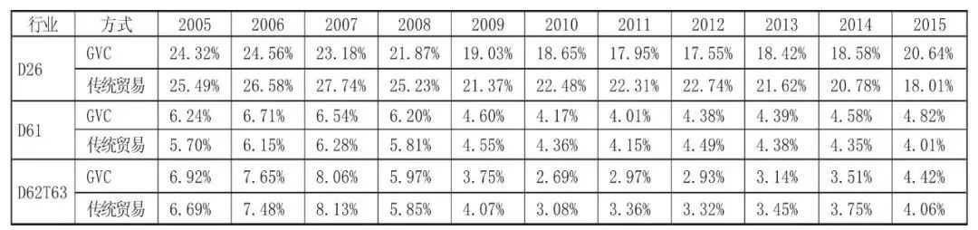 数据来源:UIBE GVC Indicator数据库,由作者计算得出。