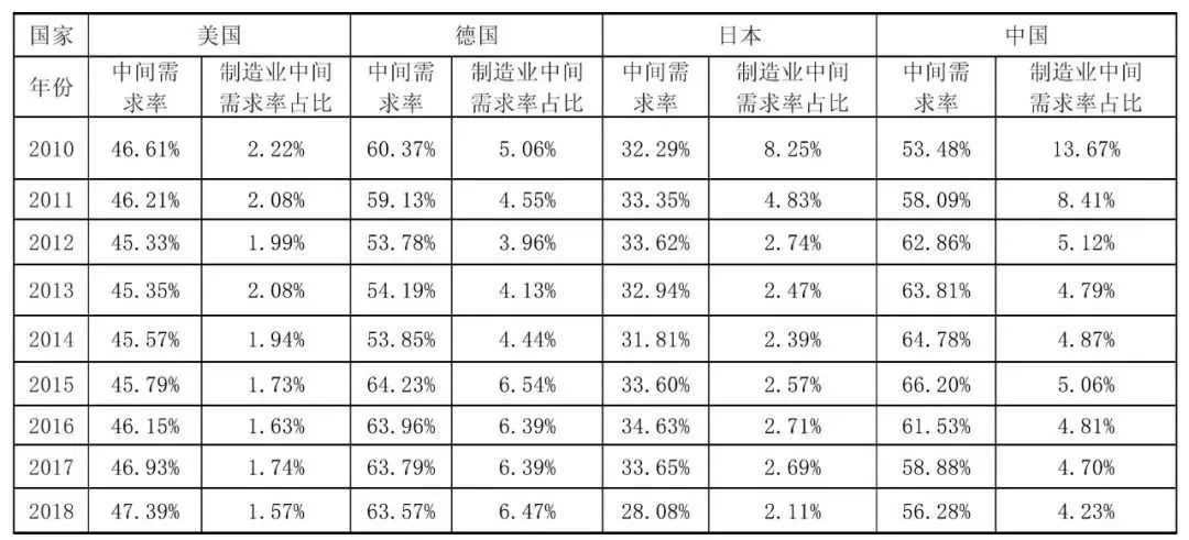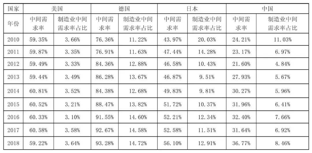 But the share of intermediate demand used in manufacturing has changed little. With the vast majority of intermediate demand being supplied to non-manufacturing sectors. Fourth, by country, Germany has the highest intermediate demand for the three digital economy industries among developed countries, and the intermediate demand rate of the manufacturing industry to the digital economy service industry is much higher than that of the United States. There is still a gap between China and developed countries in the degree of digitization and intermediate demand for IT and information services.