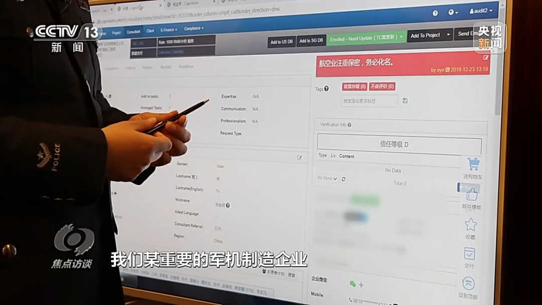 Shanghai State Security Bureau police: “In order to meet customer needs, even for some consulting projects involving defense, military industry, cutting-edge technology and other sensitive fields, the specific project manager will send a mass email within the company, mobilize everyone around military enterprises, secret scientific research units, more phone calls, contact and lobby experts who grasp the relevant internal situation to receive consultation.” The company also told the experts they could answer sensitive questions’ laterally ‘using workarounds such as examples and metaphors.”
