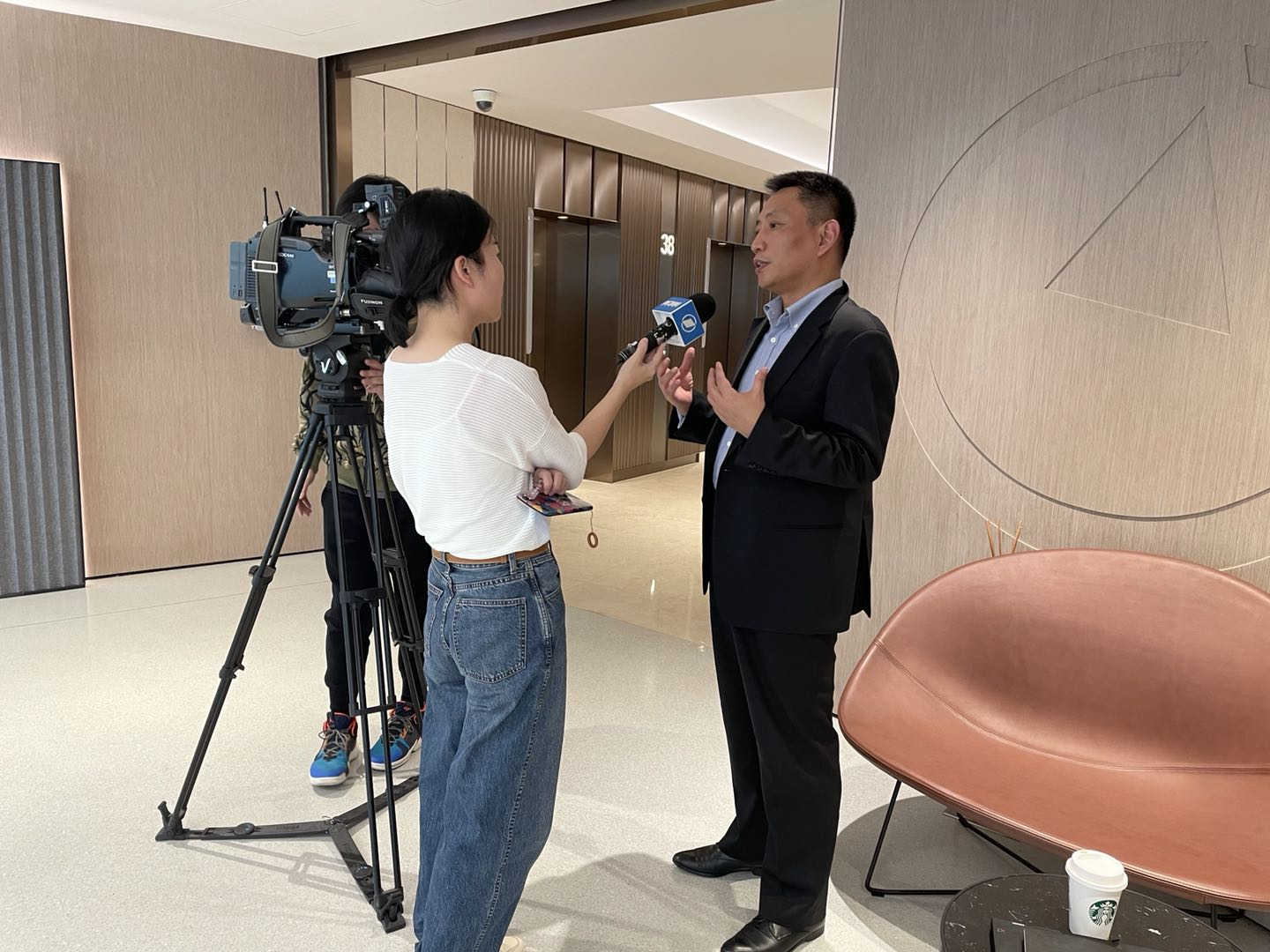 Li Shu is interviewed by the media