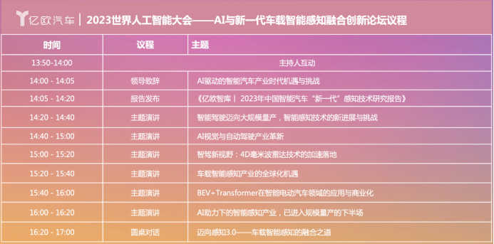 作为2023世界人工智能大会重要的系列论坛之一,“AI与新一代车载智能感知融合创新论坛”将邀请车载智能感知的相关企业一同探讨新兴技术发展路径,为中国智能电动汽车产业的发展添砖加瓦,助力智能电动汽车的长远发展,共谋汽车出行产业的新篇章。