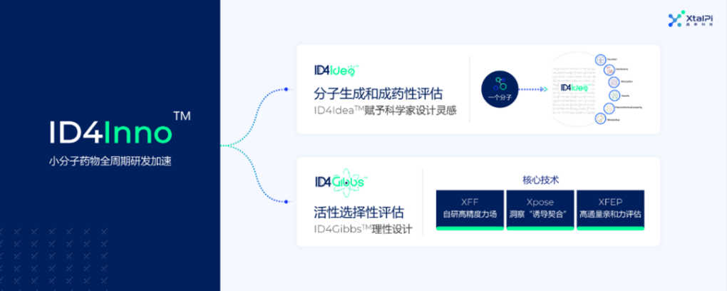 晶泰科技旗下 “ 晶泰智药 ”品牌,专注以先进 AI 技术落地于创新药物早期研发,有以智能化自动化创新小分子药物发现的 ID4Inno™ 和致力于下一代创新抗体药物发现的 XupremAb™ 两大特色技术平台,以人工智能、云计算、大数据等新技术为抓手,以缩短药物研发周期,降低试错成本,提升研发成功率为目标,助力药物研发向“计算密集型”和“自动化密集型”转变,让药物研发更智能,让生物创新触手可及。