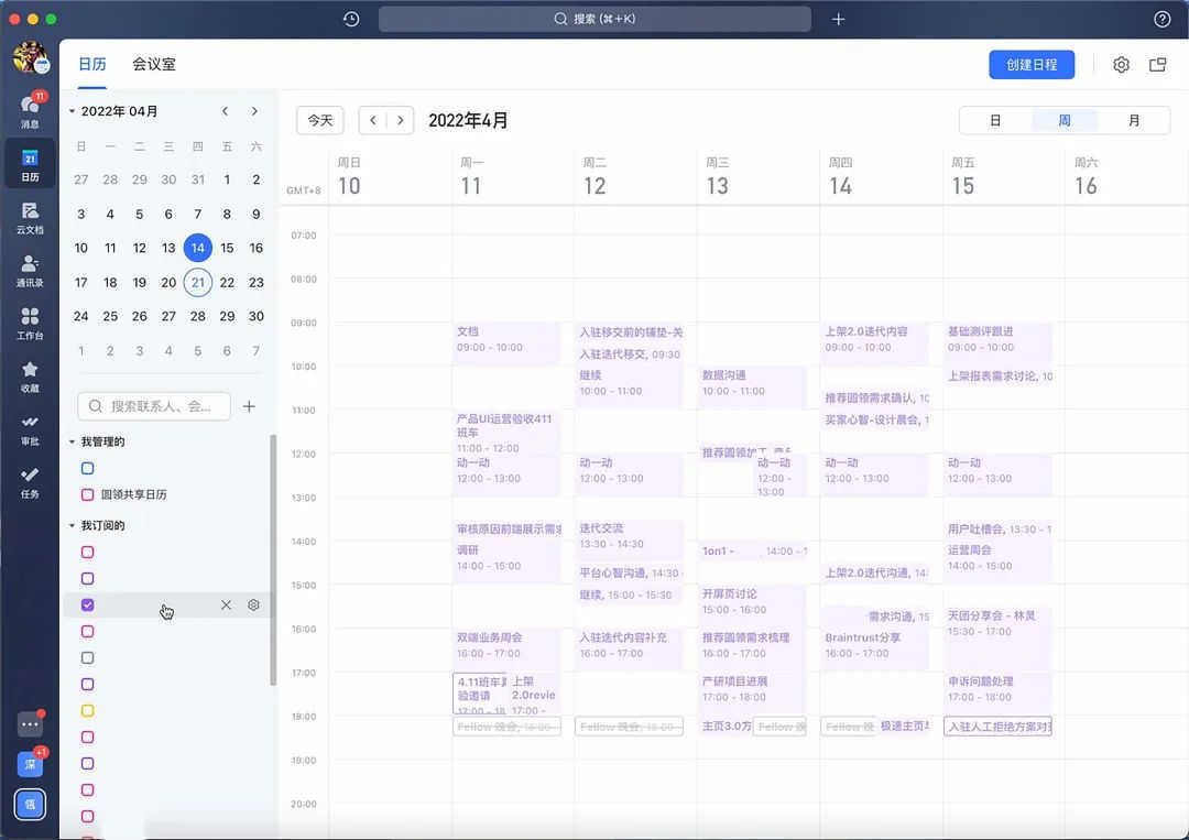 在圆领,大家有明确的上下班时间,正因此,上班时间内快速响应、快速沟通已然成为大家的一种默契。同时,所有人的飞书日历均为公开状态,这就意味着公司所有人都能清楚地看到对方此刻在做什么,以达到彼此高效协作的目标。比如说,作为设计师的马颖云,她会在日历上做好一天的时间管理,哪些时间用于思考,哪些时间用于沟通,哪些时间用于设计工作。