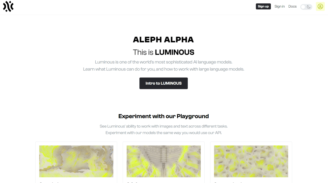 2022年4月,位于海德堡的德国初创公司Aleph Alpha发布了一款拥有700亿参数的预训练模型Luminous,大约是GPT-3的一半左右。Aleph Alpha在此基础上训练了聊天机器人Lumi,并计划在今年晚些时候发布最新版Luminous-World,其参数规模将达到3000亿。