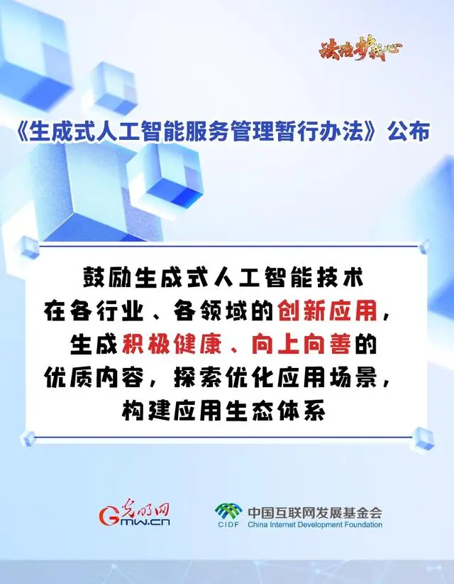 第五条 鼓励生成式人工智能技术在各行业、各领域的创新应用,生成积极健康、向上向善的优质内容,探索优化应用场景,构建应用生态体系。