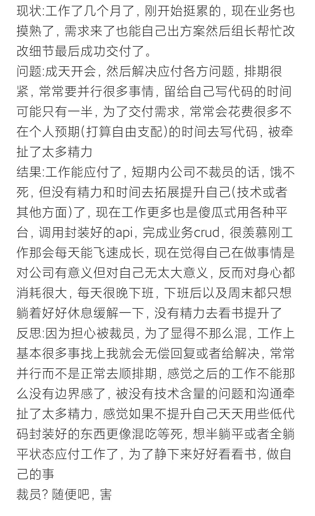 - 低代码工程师:天天用些低代码封装的东西,更像混吃等死,没提升!