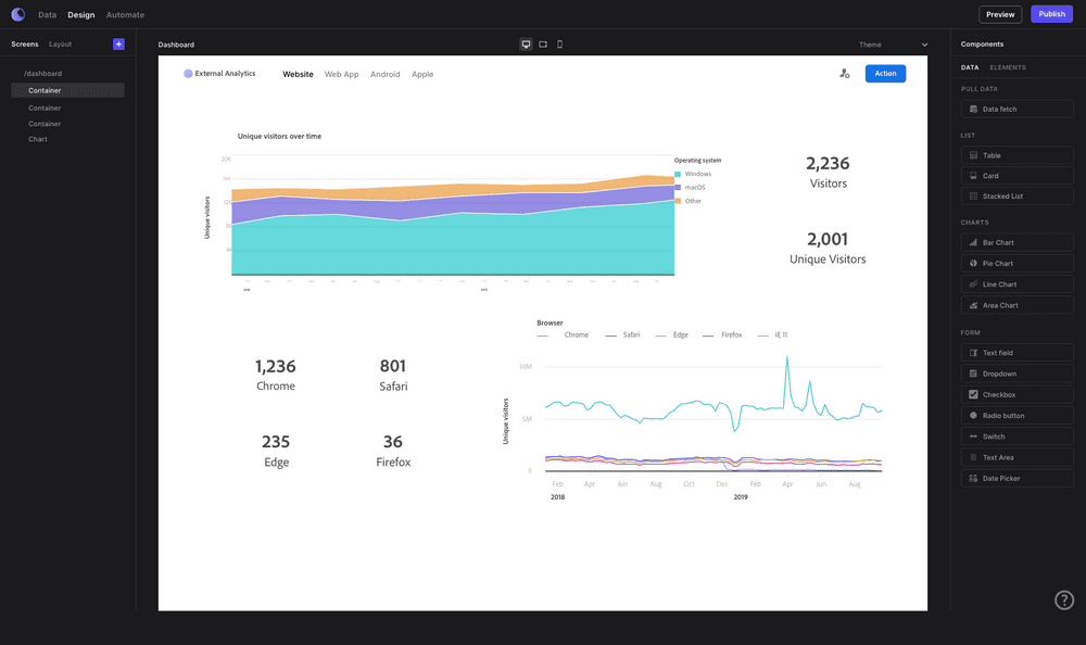 Budibase 是一个开源的低代码平台,帮助 IT 专业人士在几分钟内在自己的基础架构上构建、自动化和交付内部工具。它专注于为开发人员提供工具,以加快一个平台内的开发、部署和集成过程。