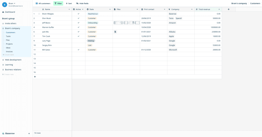 Baserow 是一个 Airtable 的开源替代品,是一个开源的在线表格应用,其单元格支持各种各样的数据类型。用户可以使用这个无代码的平台来创建一个数据库,而无需任何开发技能。