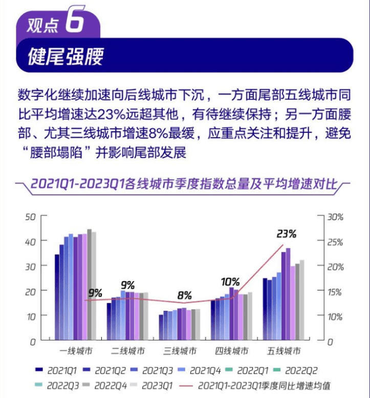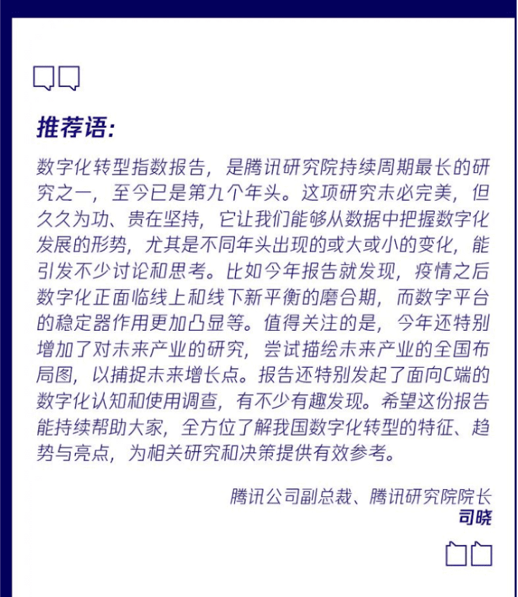 数字技术推动产业变革加速演进,未来产业成为经济增长的新动能。7 月 7 日,全球数字经济大会闭幕式在北京举行,腾讯研究院联合腾讯企鹅有调、清华大学二十国集团创业研究中心发布了《数字化转型指数报告2023》。这是腾讯研究院连续第九年发布全国数字化指数报告,在历年关注全国数字化转型进程的基础上,今年的报告首次增加了对未来产业指数和公众数字化认知的分析。数字化转型网www.szhzxw.cn