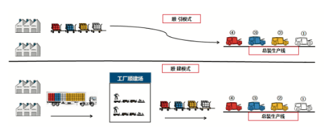 Shunyin and Shunjian logistics mode will reduce the manufacturer’s occupation of storage resources in the production workshop. Which is one of the logistics modes often used in resource-constrained factories. At present, each vehicle factory basically implements the integration of the assemblies that occupy relatively large storage space such as tires, seats, and powertrains. For the parts with insufficient engineering depth (the front station of the final assembly line). Although they are also parts that occupy large storage space in the factory, due to the short logistics response cycle. They cannot be arranged at the supplier and then supplied to the manufacturer. Generally, parts are collected in batches according to the manufacturer’s production plan. And then the appropriate site construction sequencing area (along the construction site) is selected near the production workshop of the factory. And the just-in-time supply is arranged according to the sequence of the production line vehicles.