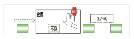 自动化是精益生产方式的两大支柱之一(另一个是准时化),是精益思想在质量管理层面的体现。如前文所述,“自働化”指的是生产线(设备)能够 “自动”检测到生产过程中发生的异常并立即采取措施,避免生产质量不合格的产品(如图16所示)。“一有异常马上停机,绝对不生产次品”,“人不做机器的看守奴”,这是精益思想创始人提倡的“自働化”的根本理念所在:“制造不合格是最大的浪费”、“第一次就把事情做对才是真正的精益”。