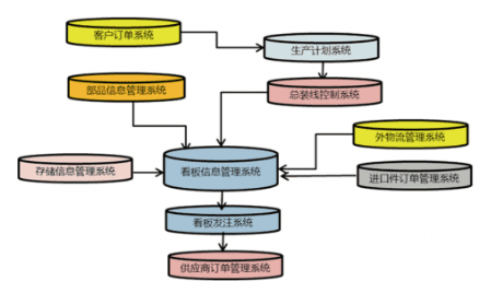 As shown in Figure 17, the production planning system efficiently processes a wide variety of personalized demand information from customers. And provides the control system of the final assembly line to form a levelized virtual production line vehicle information. Kanban information management system comprehensively processes a series of related information such as vehicle information, parts information management system and external logistics management information, forming parts financing information to be sent to suppliers one after another as planned.