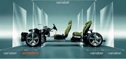 The platformization of collinear products has a great supporting effect on the lean of supply chain. The so-called “platformization” is to modularize the composition of the vehicle, fix the position of the main units such as transmission and engine, and arrange the relative positions of other assembly modules “freely” (as shown in Figure 20) to achieve different functions and meet different needs (more than ten years ago, the platform of Volkswagen’s Neeza concept car has derived a series of products such as Lavida, Langhong and Langda).