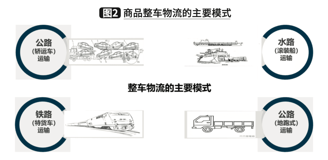 (4)地跑物流模式,一般适用于大型载重车、客车等运输,实现单辆份、点对点运输,灵活快捷,但是效率较低,也无法实现“零公里”交付。一般情况下,实现商品车从制造商交付到销售商的运输方式会应用上述四种方式中的一种或几种的组合。中国数字化转型网www.szhzxw.cn