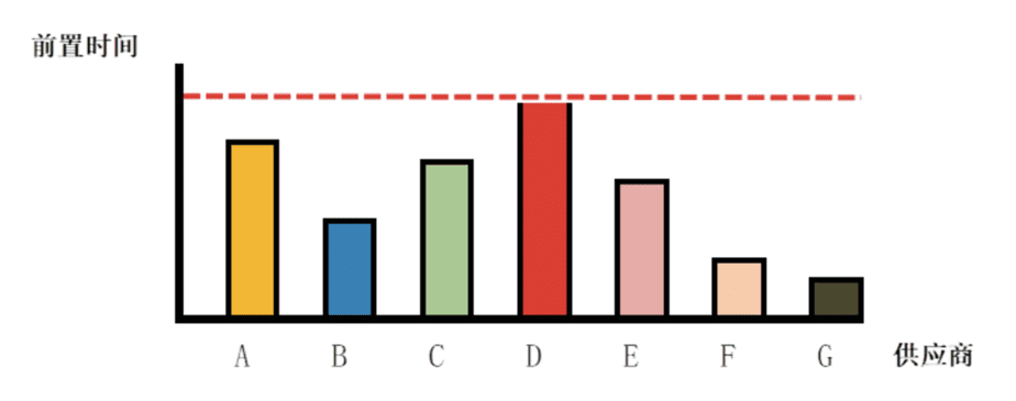 图中所示的供应商D的前置时间最长,为了保证生产链的精益性,将会重点考虑这个因素,制定合理的生产计划锁定期。例如,在上世纪九十年代,国内一些与欧洲企业合资的企业,由于CKD零件的前置时间是90天左右,所以生产计划锁定周期一般是三个月:三个月前海外订货,三个月后交付使用,期间的生产计划无法调整(只能调整三个月之后的物料订单,也就是三个月后的生产计划)。目前的管理手段已使L/T大幅度缩短,但是,如果过分追求柔性化,将会影响生产秩序和物流秩序的稳定性(需要频繁调整集货路线,频繁测算、核定所配置的资源),甚至需要增加大量库存储备以应对变动,这是与精益化的理念相违背的。因此,保证必要的生产计划锁定期,平衡好刚性锁定与柔性制造的关系,对构建精益生产链将是十分重要的。中国数字化转型网www.szhzxw.cn