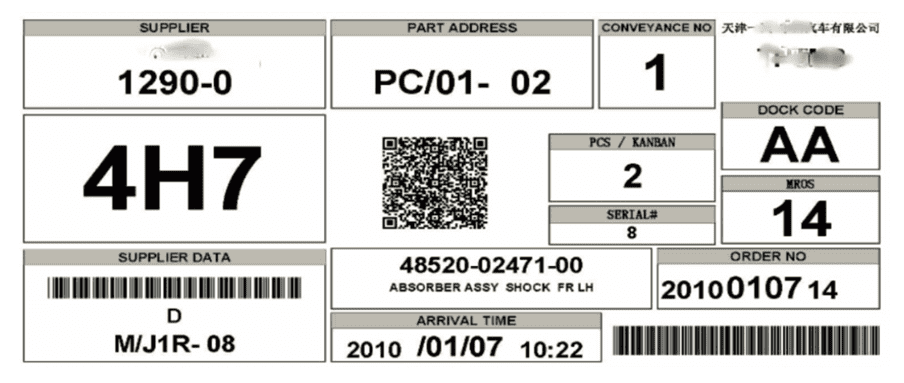 如图6(左)所示,“前补充”模式的运行步骤开始于制造商按照《(月度)生产计划》按照车型与产量“平准化原则”在信息系统内生成“虚拟生产线”的过程。制造商根据物流周期(供应商的生产准备按照《内示计划》要求)、零部件装配的工程深度、订单分割实际等向供应商发送要货信息(信息载体为电子看板,结构与内容如图9所示),确保提前发注的要货信息(比如在焊装车间或涂装车间的信息采集点)在约定的时间与总装的特定工位精准匹配抵达。