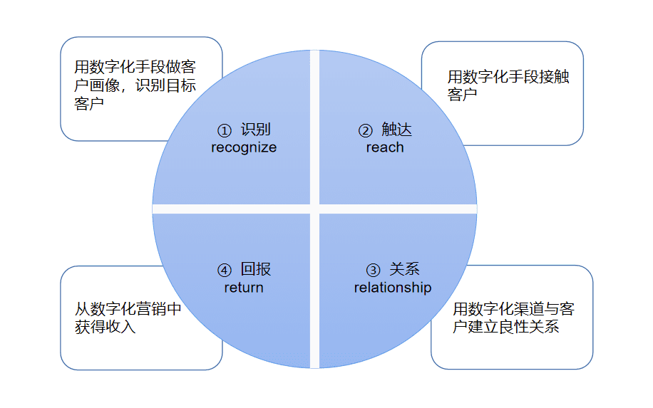 Recognize(识别)指用数字化的方法了解和识别目标客户。