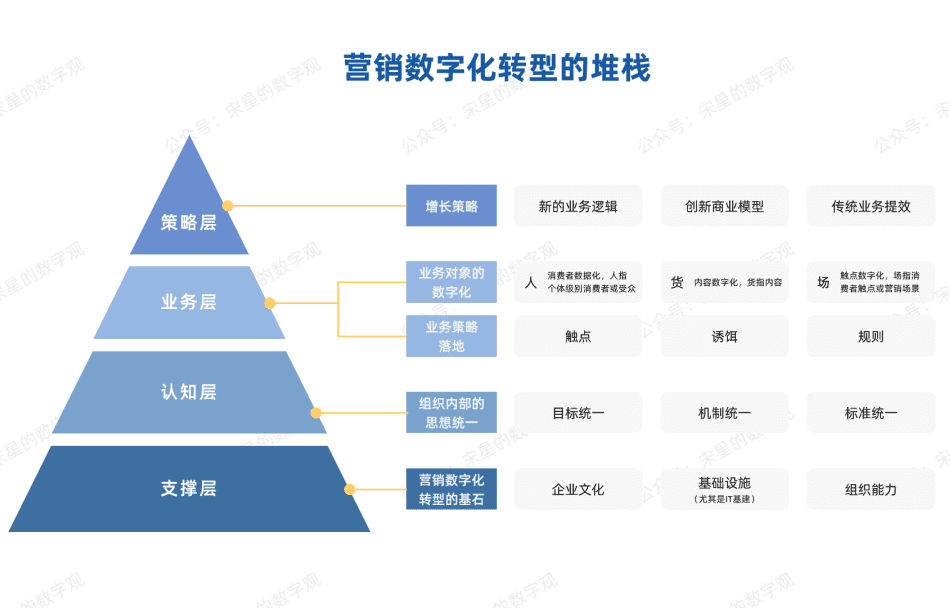 4.如果一句话来说营销数字化转型,我会用“从流量变现的数字营销,转变为以消费者为中心的、个体级别颗粒度的、生命周期的数字营销和运营。”