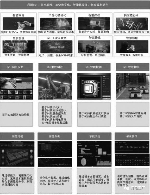 物联网技术的应用。美的工业互联网品牌“美擎”,具备了大数据、工业仿真、智能排产、智能互联等核心能力,整合了6 000余个工业机理模型、800余个微服务组件,可以分为能力层、应用层、商业层、产业层。其中“能力层”通过库卡机器人、美的云提供云基础设施等,将这些“能力”向美的合作伙伴开放;“应用层”则包括营销领域、研发领域、智能制造领域、管理领域;“商业层”引入八大矩阵,在模具、智慧物流、智慧楼宇等方面实现商业赋能;“产业层”则通过自有的工业互联网平台联合汽车等产业,打造专属行业的工业互联网平台。美的工业互联网平台整合了机器人、自动化、IoT等工业能力,帮助企业实现业务转型释放潜在价值,为我国工业互联网平台发展提供了重要的实践参考。5G+工业互联网数据采集图如图9所示。