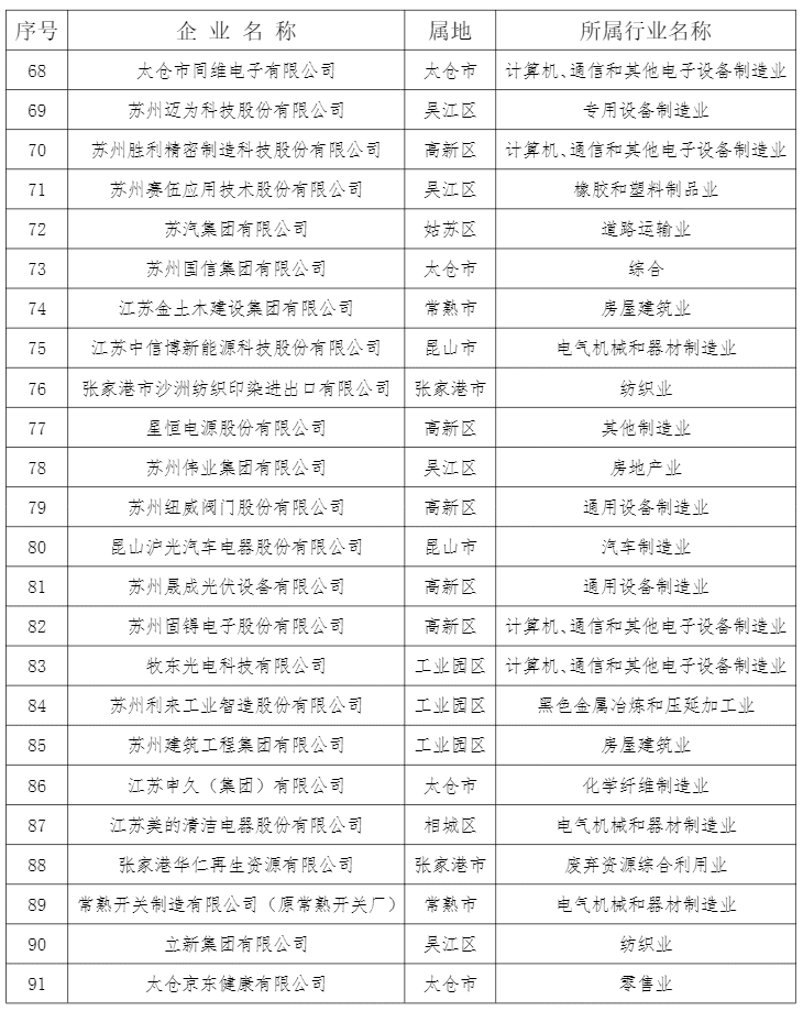 入围企业中,张家港市15家,吴江区14家,苏州工业园区13家,太仓市11家,常熟市、昆山市各10家,苏州高新区(虎丘区)9家,相城区7家,吴中区6家,姑苏区5家。中国数字化转型网www.szhzxw.cn