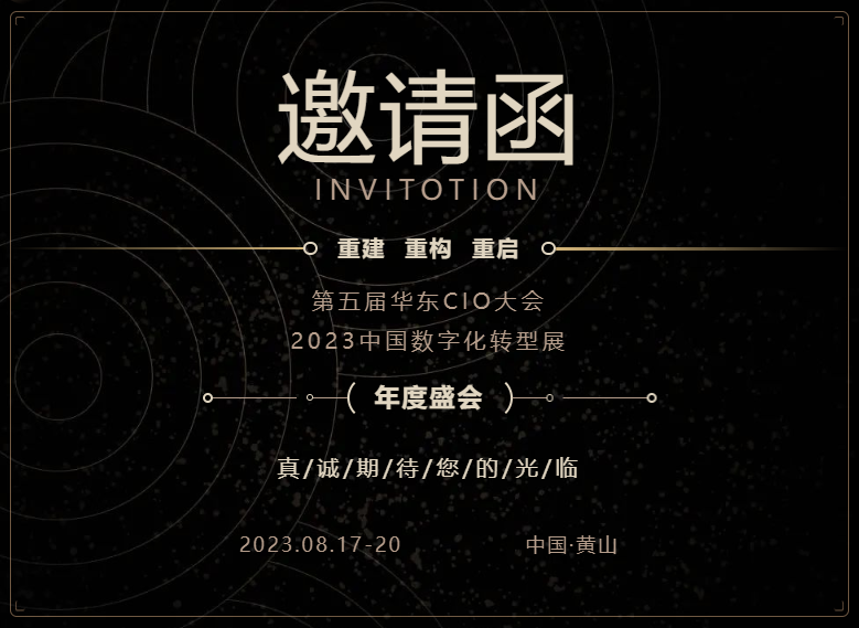 The 5th East China CIO Conference and 2023 China Digital Transformation Exhibition will take “Rebuilding confidence, rebuilding ideas, restarting changes” as the theme, and jointly discuss the change of enterprise management and digital transformation under the new economic environment.