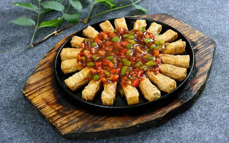 Huizhou hairy tofu is one of the famous traditional dishes in Huizhou. With its unique flavor, it has been a leader in Huizhou cuisine for more than 500 years. It uses bean curd strips for artificial fermentation, so that its surface grows a layer of white hairs, after frying, baking, frying after the tiger skin pattern named. Tiger fur tofu is suitable for all seasons, stall owner shoulder a pair of tofu, one is dry wood and pan, one is hairy tofu and oil and pepper, oil fried up hot, fragrant. The flavor of this dish is extraordinary, leaving people with endless aftertastes.