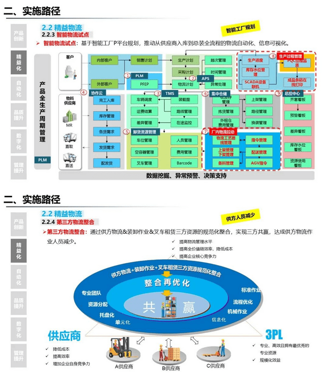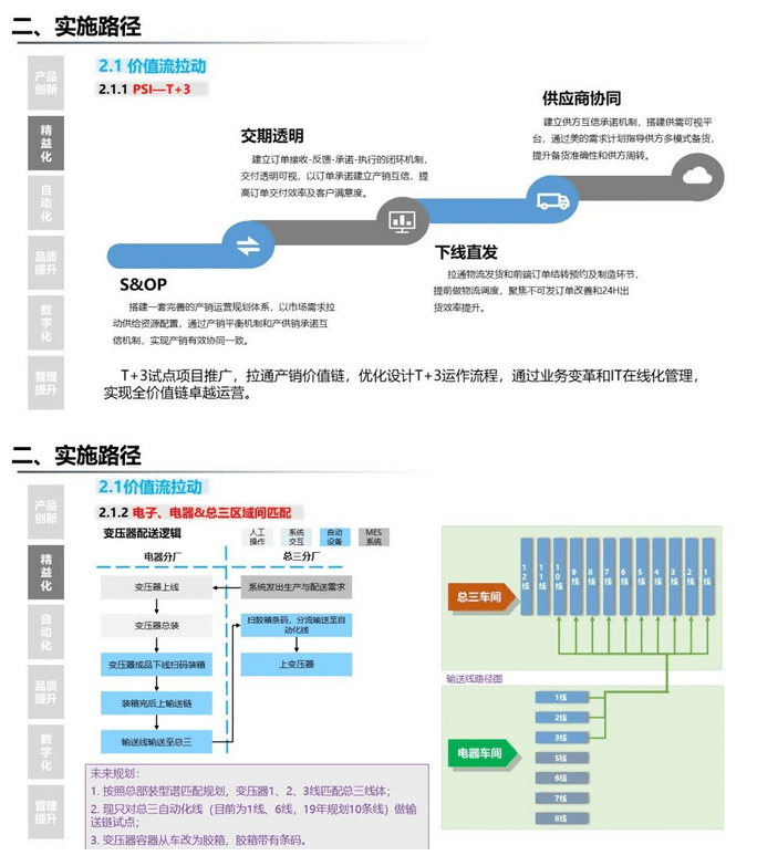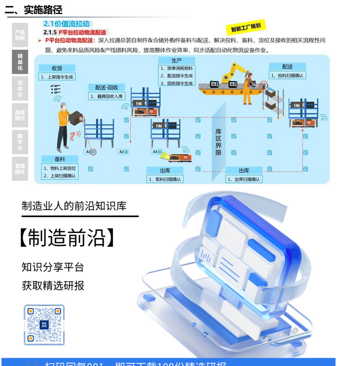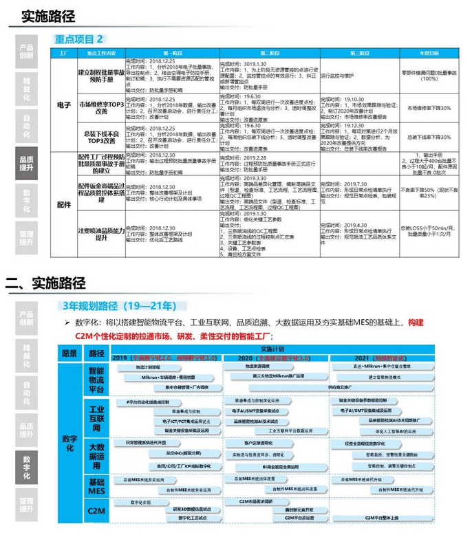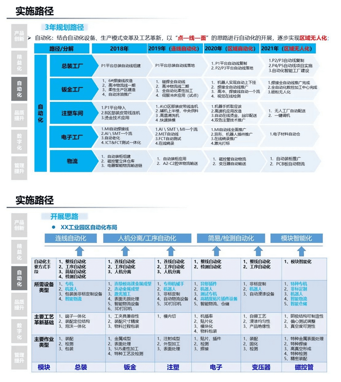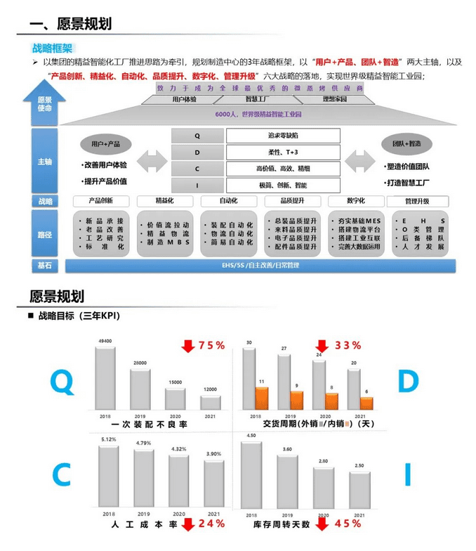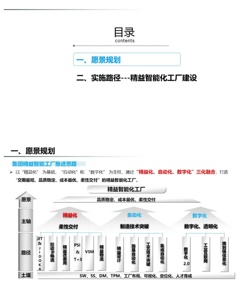 今天分享一份重磅PPT——精益智能工厂数字化建设三年行动计划方案。PPT包含精益智能工厂的愿景规划以及具体的实施路径。是一份难得的学习资料。数字化转型网www.szhzxw.cn