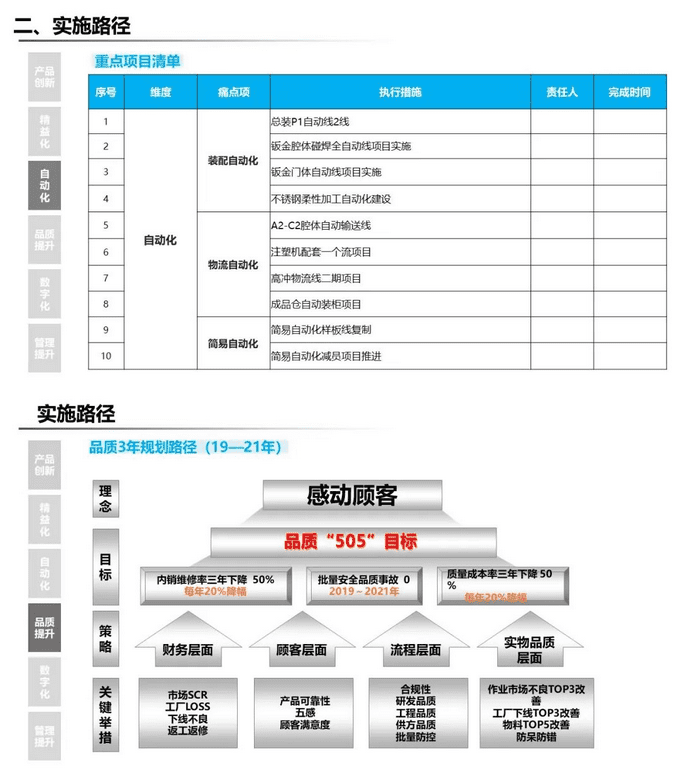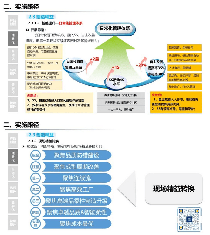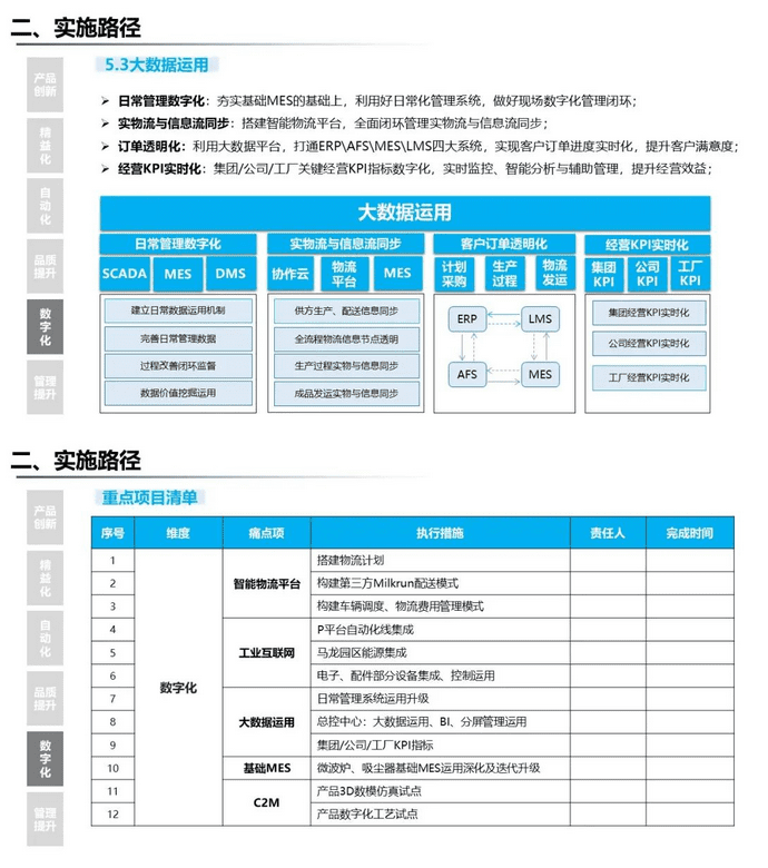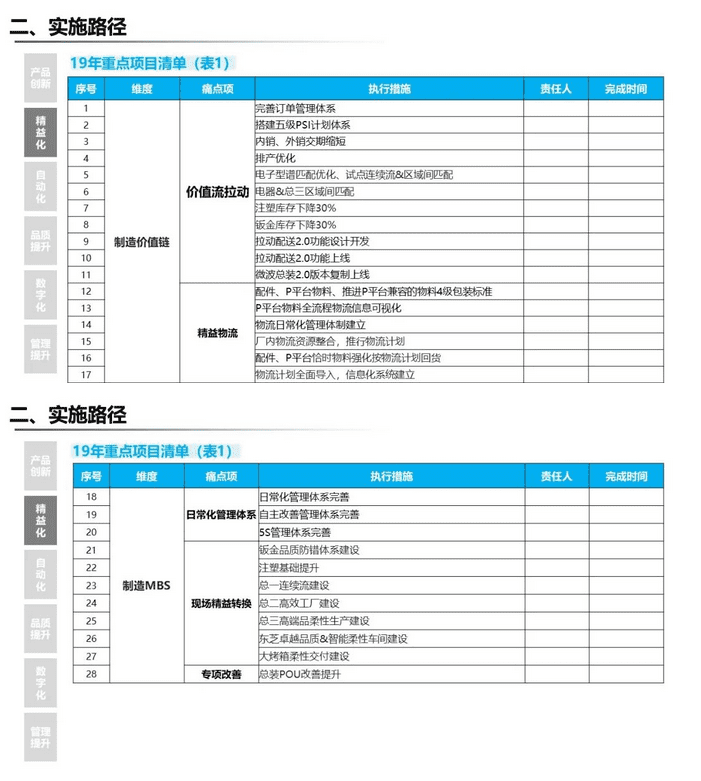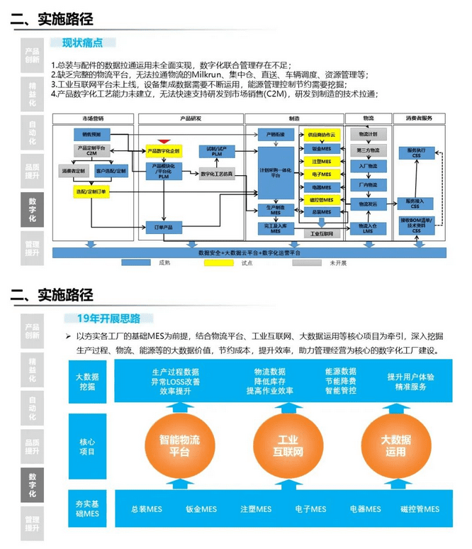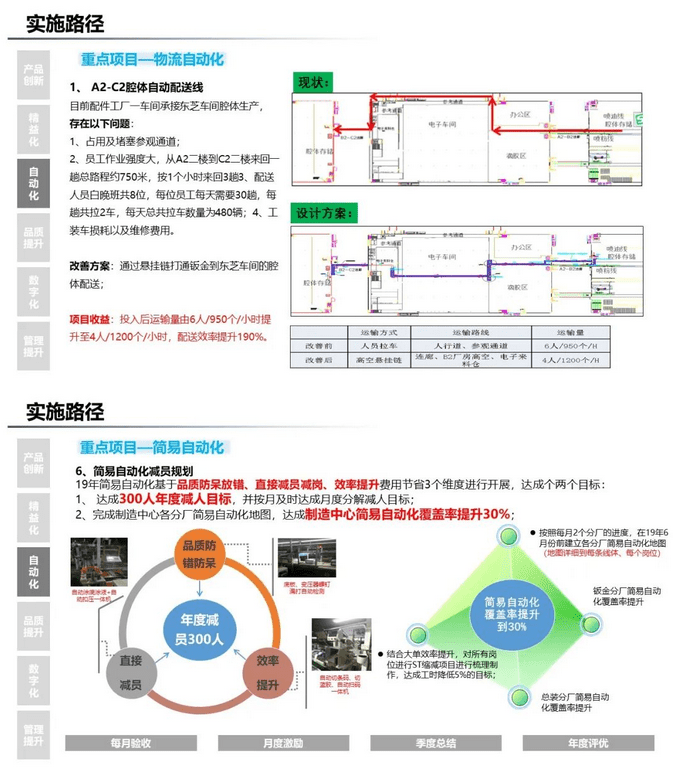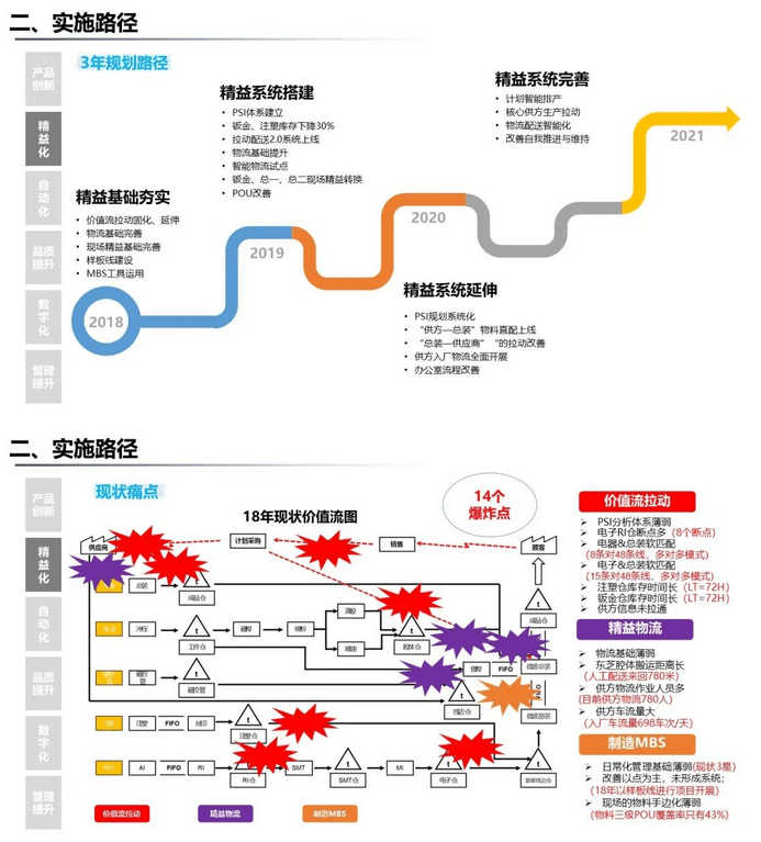 今天分享一份重磅PPT——精益智能工厂数字化建设三年行动计划方案。PPT包含精益智能工厂的愿景规划以及具体的实施路径。是一份难得的学习资料。数字化转型网www.szhzxw.cn