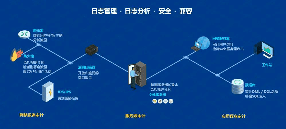 Eventlog Analyzer能够对全网范围内的主机、服务器、网络设备、数据库以及各种应用服务系统等产生的日志,进行全面收集和细致分析,通过统一的控制台进行实时可视化的呈现。