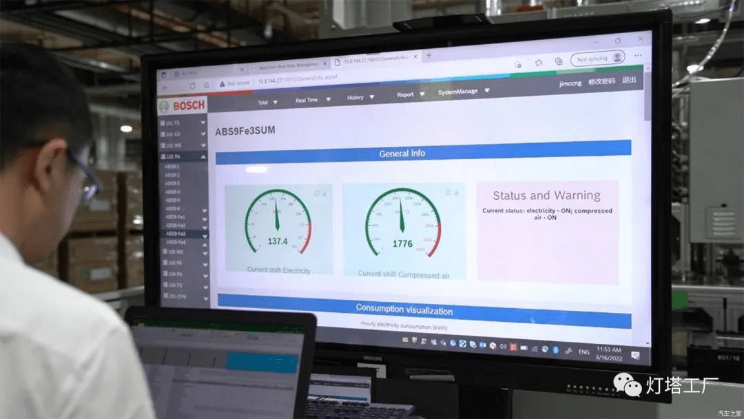 此外,在AI算法的加持下,该系统还能提供优化的停机管理和精确的能耗异常监测,让节能减排深入到各个环节。据相关工程师介绍,该系统已帮助博世长沙工厂的年耗电量减少18%,二氧化碳排放量降低14%。