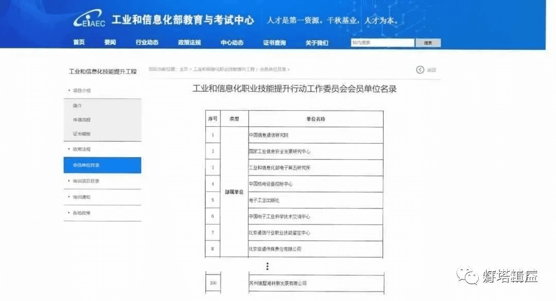 2021年11月12日,工信部教育与考试中心正式印发《工业和信息化职业技能提升培训项目指导目录》(工信教 [2021] 79号)苏州睿塔企业管理咨询有限公司成为工业和信息化职业技能提升行动工作委员会会员单位。