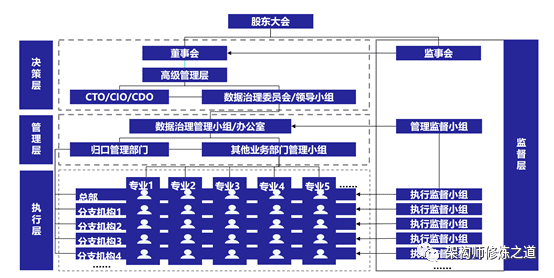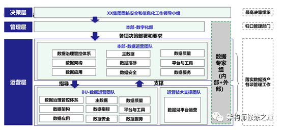 管控域:在数据治理战略指导下制订企业数据治理组织,明确组织的责、权、利,岗位编制及技能要求。