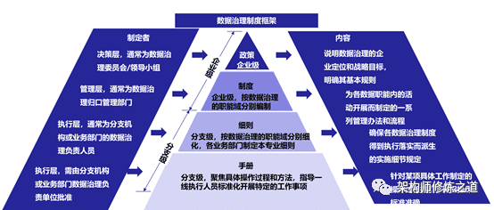 保障组织架构正常运转和数据治理各项工作的有序实施,需要建立一套涵盖不同管理粒度、不同适用对象,异覆盖数据治理过程的管理制度体系,从“法理”层面保障数据治理工作有据、可行、可控。