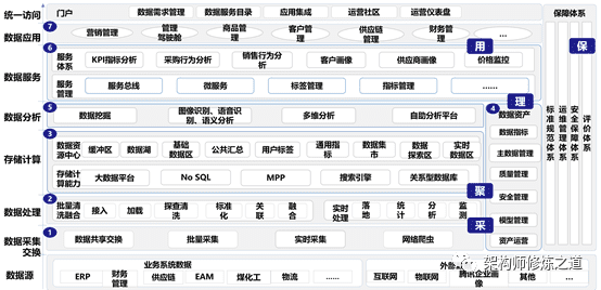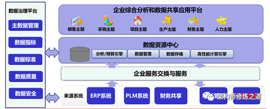 Data governance system, It includes data strategy, data governance and control system (data governance organization, system, process, management and control mechanism, performance system and standard system), data architecture, master data, metadata, indicator data, time series data, data quality, data security, data integration and exchange, data openness and sharing, data asset management capability maturity assessment, data value, data sharing, and data According to the realization of many aspects.