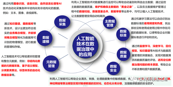 Artificial intelligence technology has deep applications in the fields of data acquisition, data modeling, metadata management, master data management, data standards, data quality and data security.