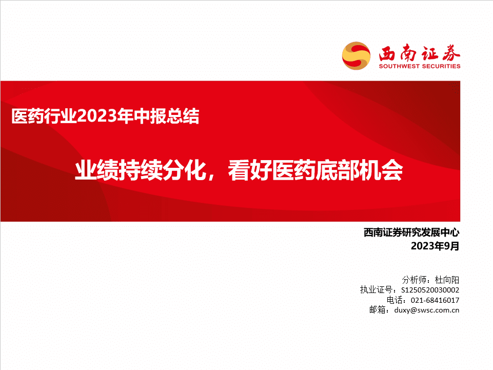 持续看好医药底部机会,重点把握“三条主线”。医药行业持仓仍处于低配状态,估值处于历史底部区间,展望2023年下半年,我们看好“创新+出海、复苏后半程、中特估”三条医药投资主线。1)主线1——创新仍是医药行业持续发展的本源。差异化创新性品种比如BTK、HER2-ADC、 PD-1/CTLA-4等靶点创新药陆续进入商业化放量阶段;创新器械包括多个手术机器人产品等陆续获批上市。此外,国际化是打开成长天花板,创新药械出海有望持续渐入佳境;2)主线2——疫后医药复苏亦是核心主线。C端消费性医疗复苏弹性较大,包括中药消费品、民营专科医疗服务、早筛等。院内药械需求复苏包括院内处方药、耗材、血制品、 常规疫苗接种需求等;渠道端包括医药分销和药店复苏;3)主线3——中特估。新一轮国企改革持续深化,针对国资委提出的“一利五率”经营指标和“一增一稳四提升”总体目标,未来有望推进中长期激励,激活企业活力。数字化转型网www.szhzxw.cn