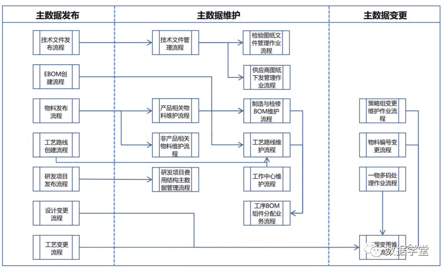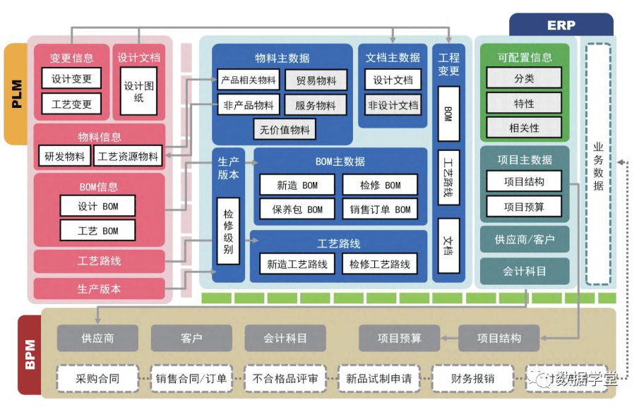 PLM synchronizes the basic view of materials, BOM and process master data to the master data management platform of ERP. Other related systems subscribe master data from ERP through the data interface when using master data. At the same time, when the data in the master data platform is changed. It is pushed to the relevant subscribers, thus ensuring the consistency of master data in different information systems.数字化转型网www.szhzxw.cn