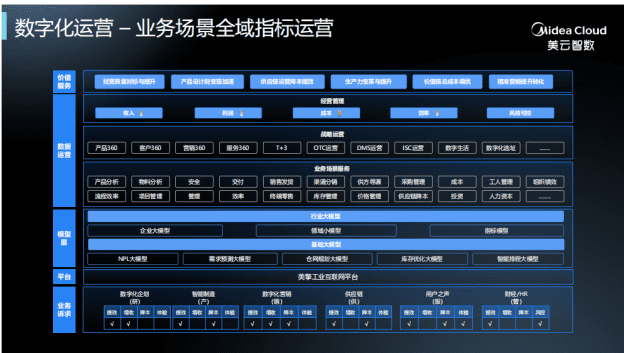 “术”,就是工具。一款好的平台工具能让大家运营起来得心应手。美云智数全域卓越数字化运营解决方案是一款贯穿企业数智化全价值链的数字化运营工具,将企业的研发、生产、营销、供应链、服务等业务系统中的数据统一汇集、整理、归档,能基于不同系统的业务诉求,通过诸如指标模型、算法模型等加工、解析后,为数据运营提供支撑,帮助企业实现提质增效降本,赋能管理决策及促动业务变革。