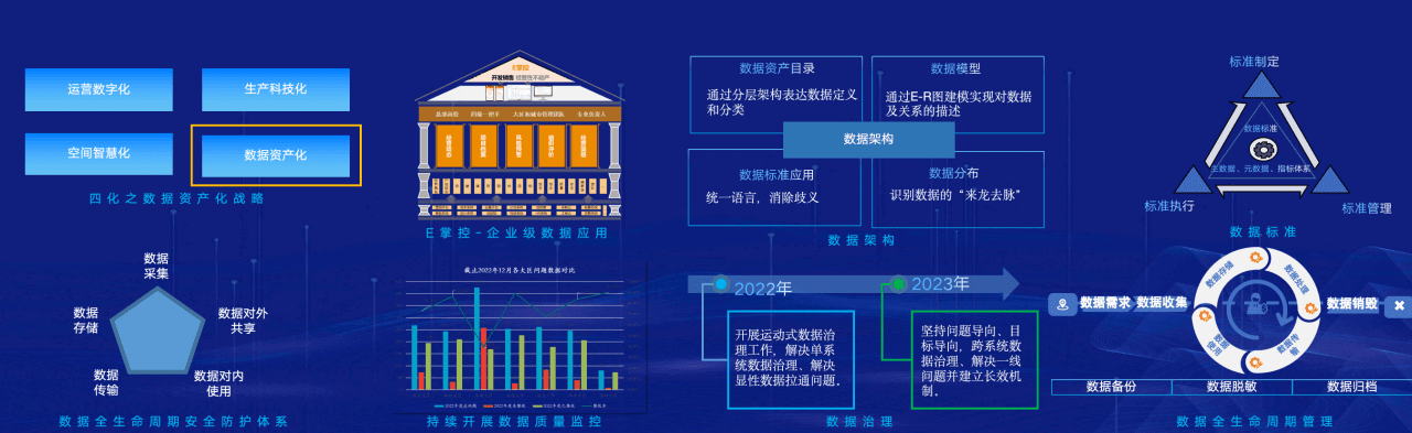 At present, China Resources Land has covered eight core initiatives such as data strategy, data application, data architecture, data standards, data security, data quality, data governance, and data life cycle. The eight contents complement each other and jointly promote the closed-loop of “business data-data asset-asset services-service business”.