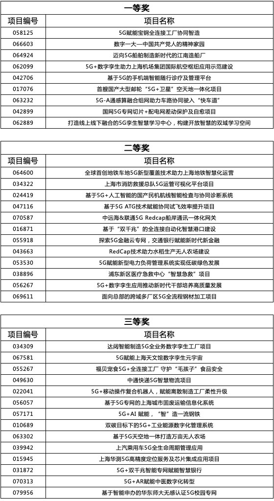 附件:第六届“绽放杯”5G应用征集大赛上海区域赛决赛获奖名单。