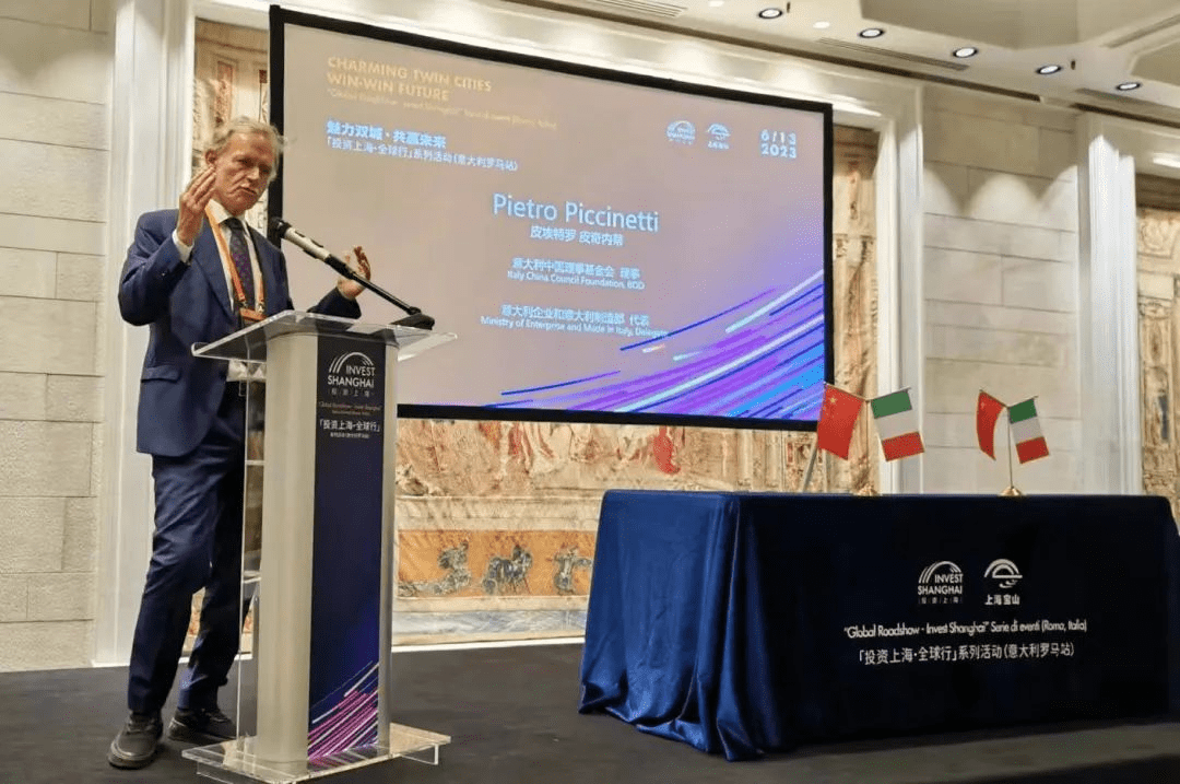 意大利当地时间6月13日上午11时(北京时间6月13日下午17时),2023“投资上海·全球行”系列活动首站在意大利罗马顺利举办。本次活动以“魅力双城共赢未来”为主题,旨在展示上海市近年来产业经济发展成果,挖掘上海与意大利在重点产业领域深化合作的增量,积极吸引更多意大利优质企业投资上海、布局中国,实现共赢发展。市经济信息化委(市投促办)副主任刘平,中国驻意大利大使馆公使衔经济商务参赞李滨,意大利中国理事基金会理事、意大利企业和制造部代表皮埃特罗-皮奇内蒂(PietroPiccinetti)出席活动并分别致辞,意大利中国理事基金会秘书长马克-贝廷(MarcoBettin)主持活动,来自生物医药、数字经济、绿色低碳、汽车等多个产业领域的近100家意大利重点企业嘉宾参会。