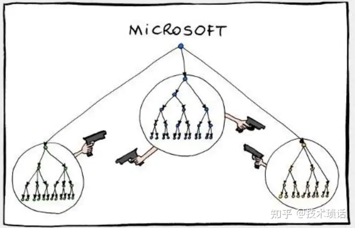 然后第三个就是他文化的刷新。之前不是有一个大企业的那个图,说那个Oracle是那个法务部人很多,然后那个微软是相互之间是拿枪指着对方。因为他们是一群很优秀的人,但是是提倡内部竞争,也提倡这个汰换排名。
