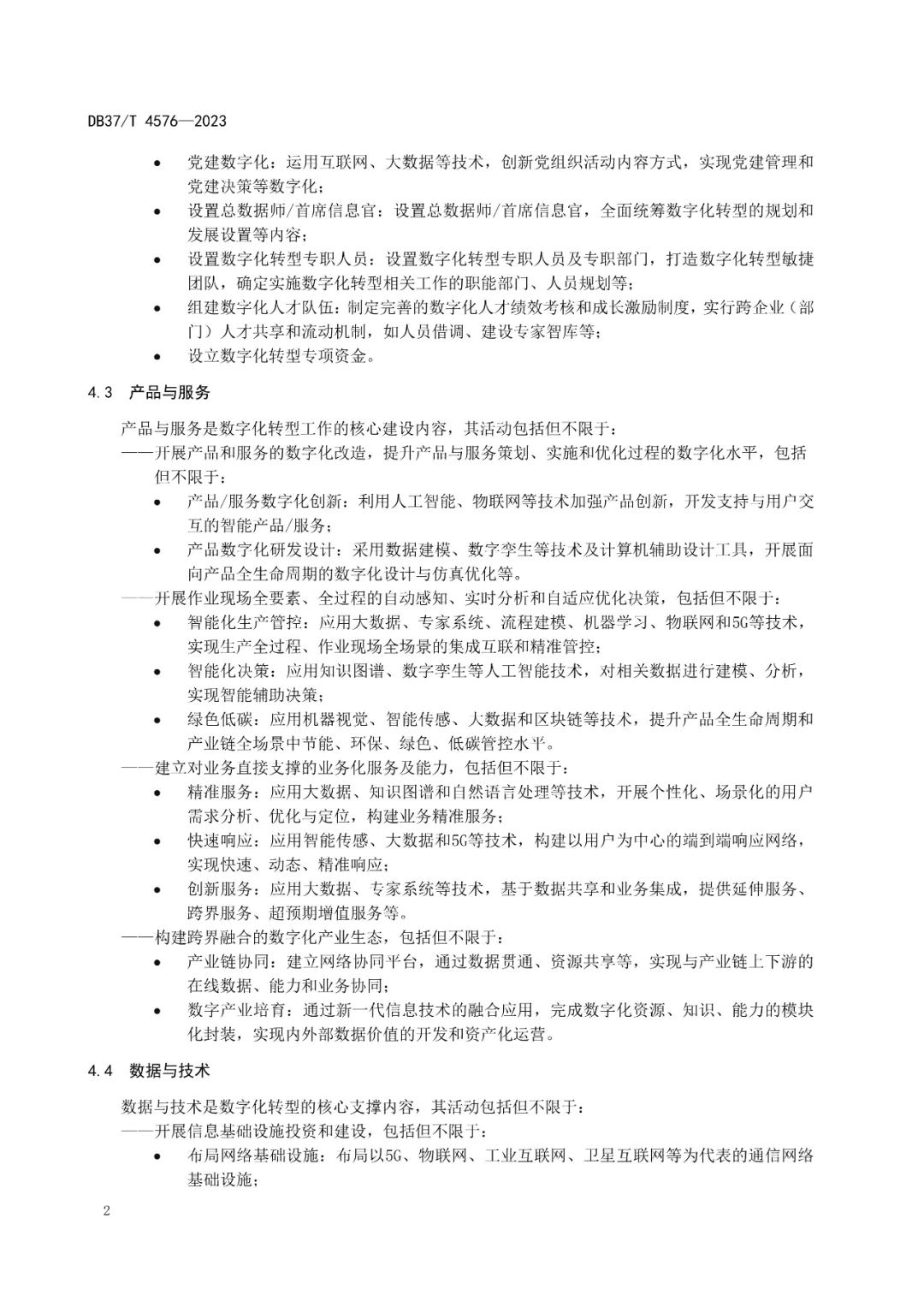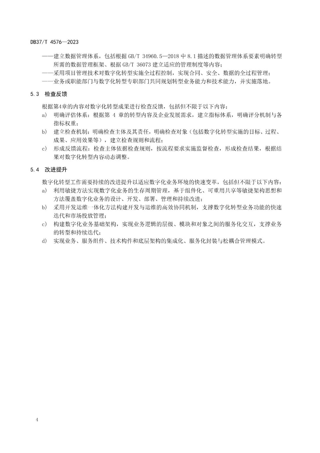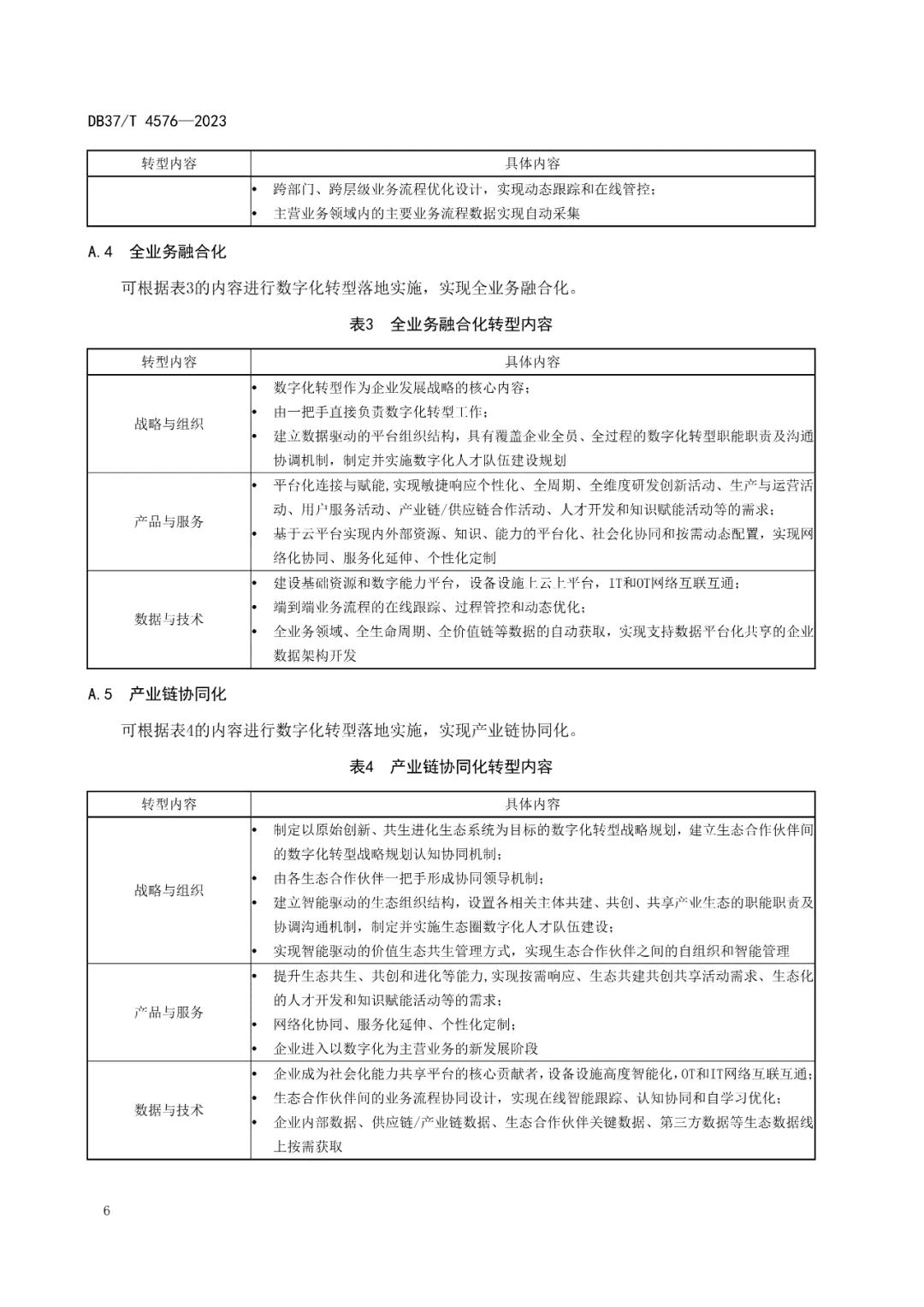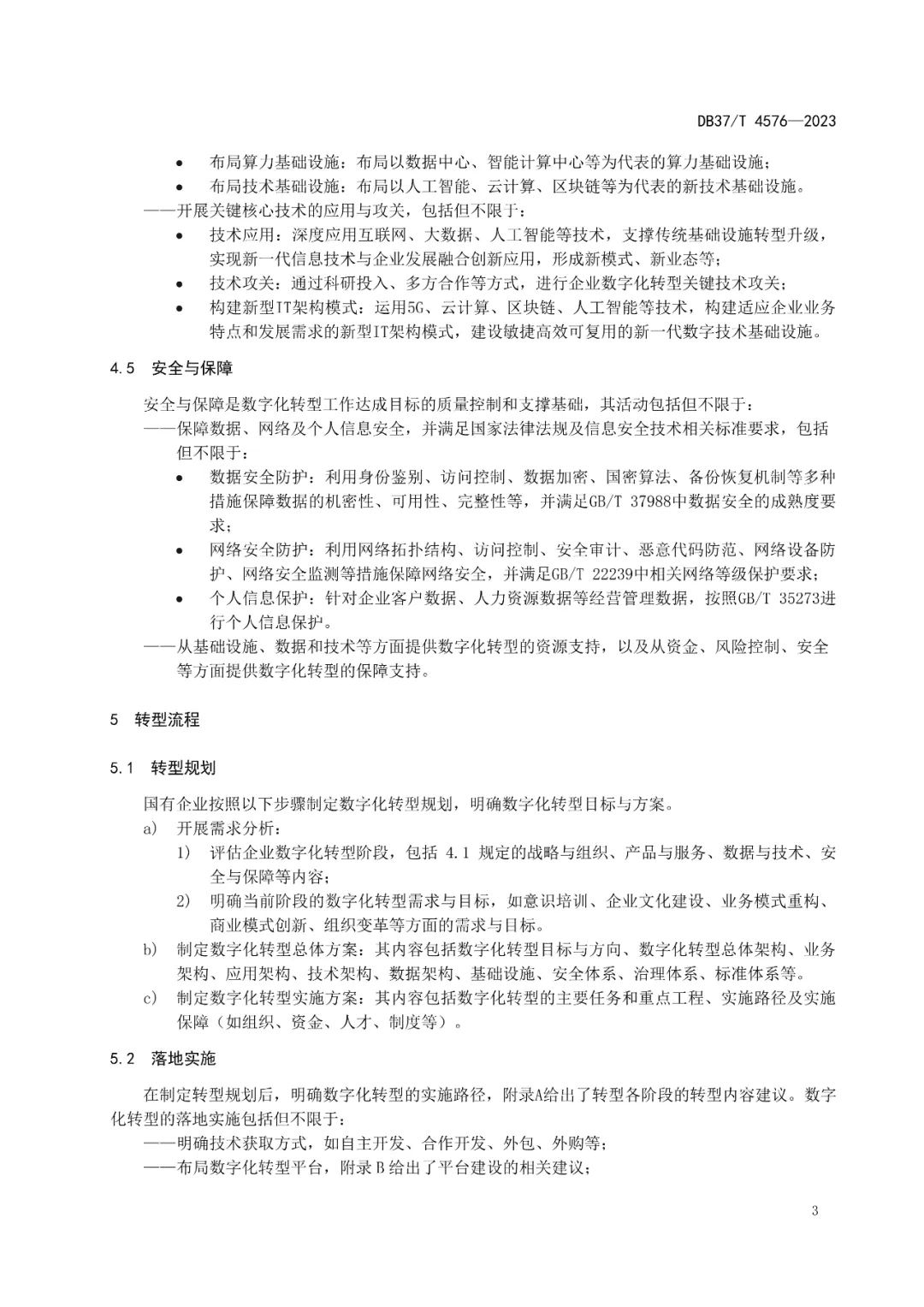 日前,山东省地方标准《国有企业数字化转型工作指南》(DB37/T 4576-2023)正式发布,这是全国第一个数字化转型地方标准。编制期间,山东省国资委联合山东山科数字经济研究院有限公司、浪潮集团有限公司和山东可信云信息技术研究院等单位,成立标准编制工作组,整体推进标准的调研、起草等工作。标准编制工作组认真研究国务院国资委、山东省委、省政府相关政策文件,全面查阅相关文献、白皮书、“十四五”规划等相关材料,对当前国有企业数字化转型情况进行了系统性梳理、归纳,从转型内容、转型流程等方面给出了山东省国有企业数字化转型的指导性建议,为山东省国有企业开展数字化转型工作提供技术指导和参考依据。《国有企业数字化转型工作指南》转型内容一章给出了国有企业数字化转型的主要工作内容。基于国有企业数字化转型现状及需求,数字化转型的关键内容包括战略与组织、产品与服务、数据与技术、安全与保障。转型流程一章给出了国有企业数字化转型的工作流程内容。主要包括转型规划、落地实施、检查反馈和改进提升等四个步骤,并明确了相关要求。各阶段转型内容一章以资料性附录的形式给出了国有企业转型各阶段的转型建议。根据转型内容,国有企业数字化转型分为单场景数字化、业务线系统化、全业务融合化、产业链协同化四个阶段,本标准给出了各转型阶段数字化转型的关键点。平台建设一章以资料性附录的形式给出了国有企业在落地实施的过程中平台建设的相关建议,明确平台的建设内容、建设原则及技术应用。
