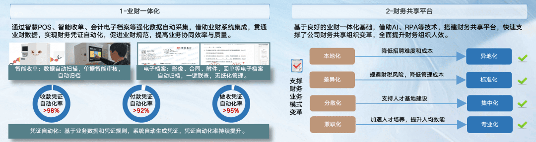 在财务数字化方面,公司一直很重视,连续多年持续建设业财一体化,并最终有效支撑了公司财务共享组织变革。