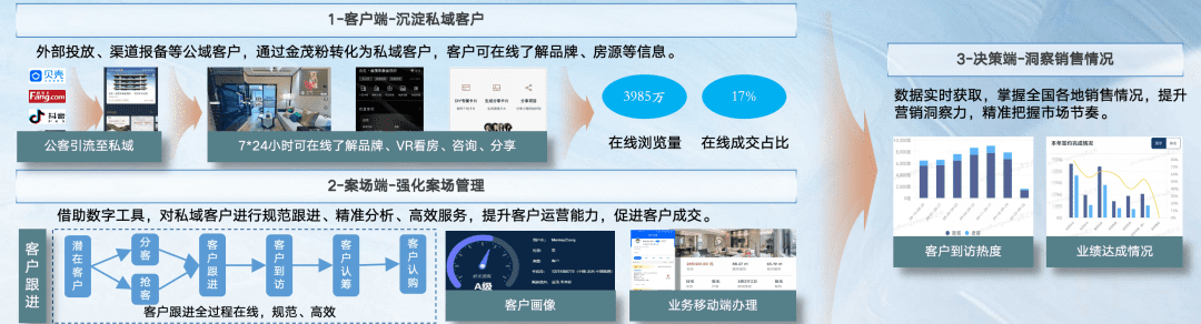 At present, Jinmao powder small program visits nearly 40 million, online customer transactions accounted for 17%. Secondly, on the field side, we created a mobile APP tool to conduct standardized follow-up, analysis and service for customers, improve customer operation capabilities, and help customers make transactions.